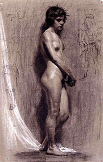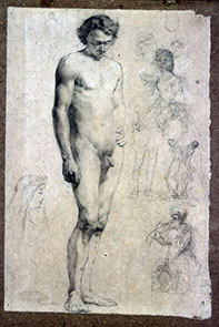 Dibujos del legado de Gómez-Moreno.- El dibujo ha venido considerándose tradicionalmente como instrumento de perfeccionamiento del trabajo de pintores y escultores, teniendo lugar su aprendizaje en la Academia o en el taller. Históricamente le estuvo asignado un papel secundario en el proceso de creación artística y su consideración como obra de arte en sí misma es relativamente reciente en España. Una clara excepción a esa norma la encarnó Manuel Gómez-Moreno Martínez (Granada, 1870-Madrid, 1970). Autor de una extensa bibliografía sobre arqueología ibérica y del arte hispanomusulmán, románico, mozárabe y renacentista, así como de las lenguas primitivas de la península. Su colección artística y arqueológica fue donada por sus herederas, a la Fundación Rodríguez-Acosta.